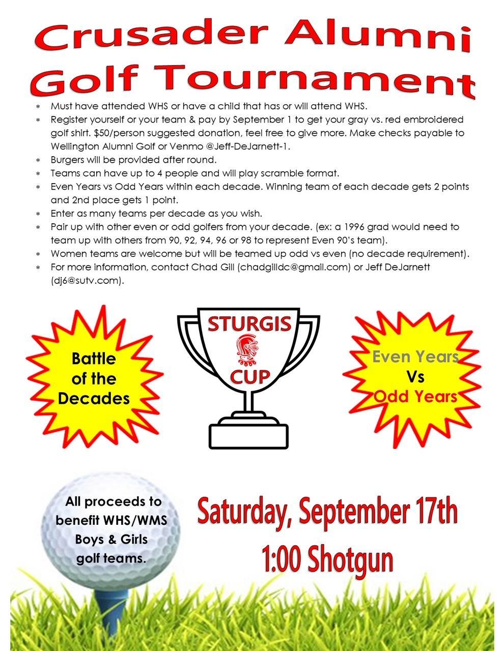 - Checks payable to Wellington Alumni Golf