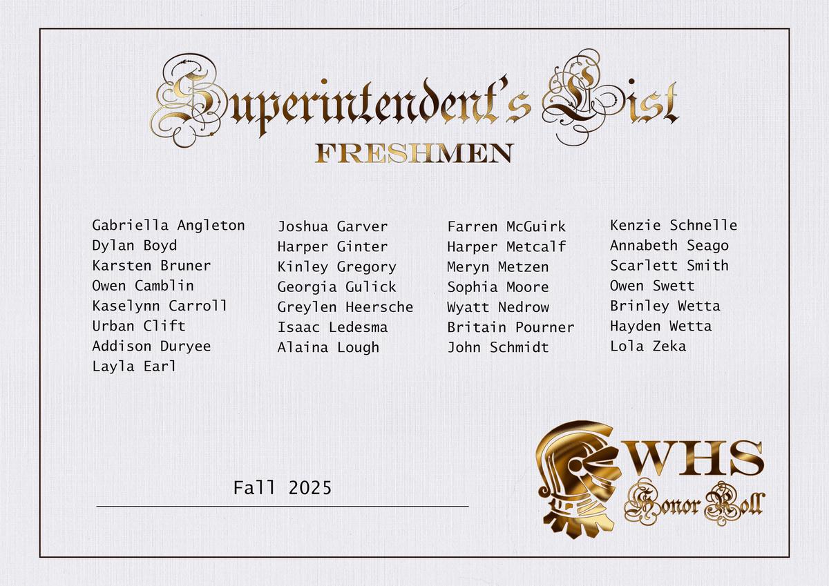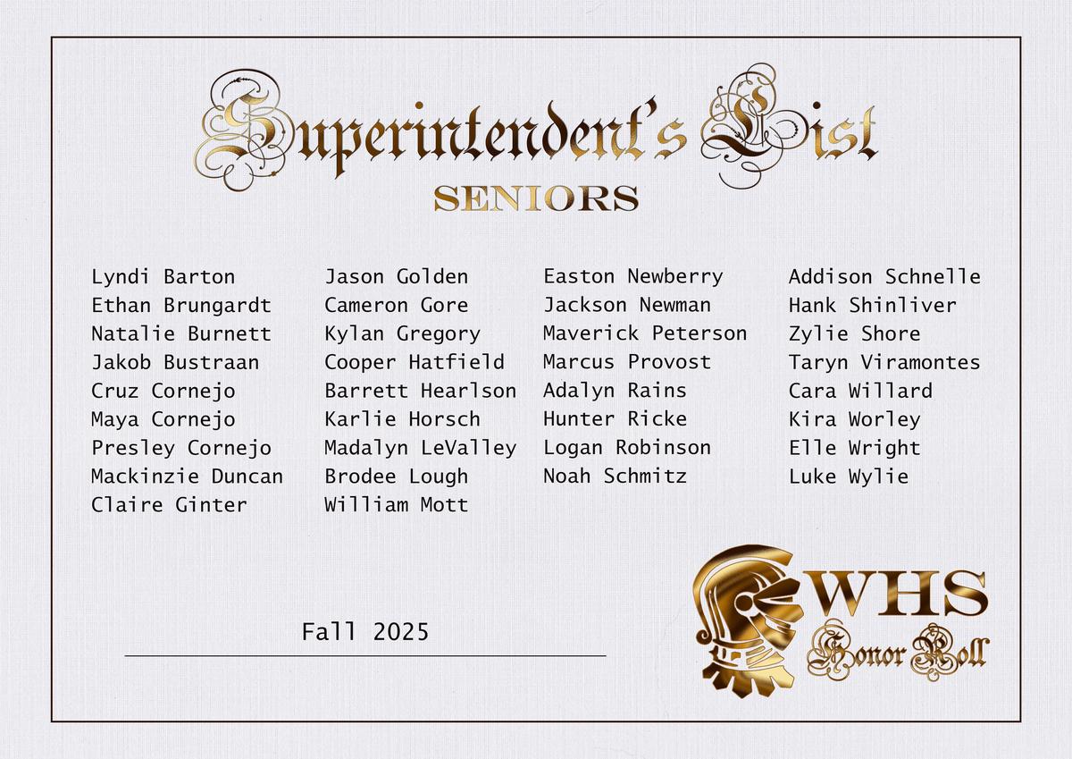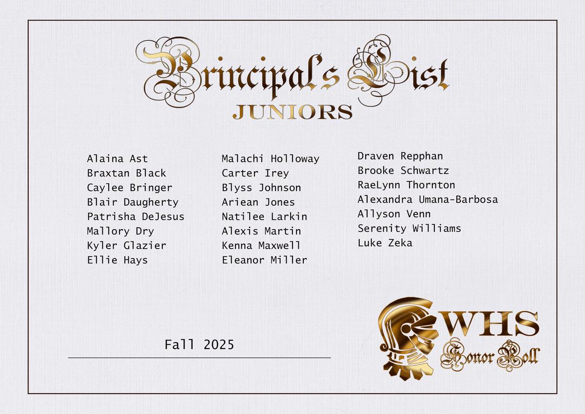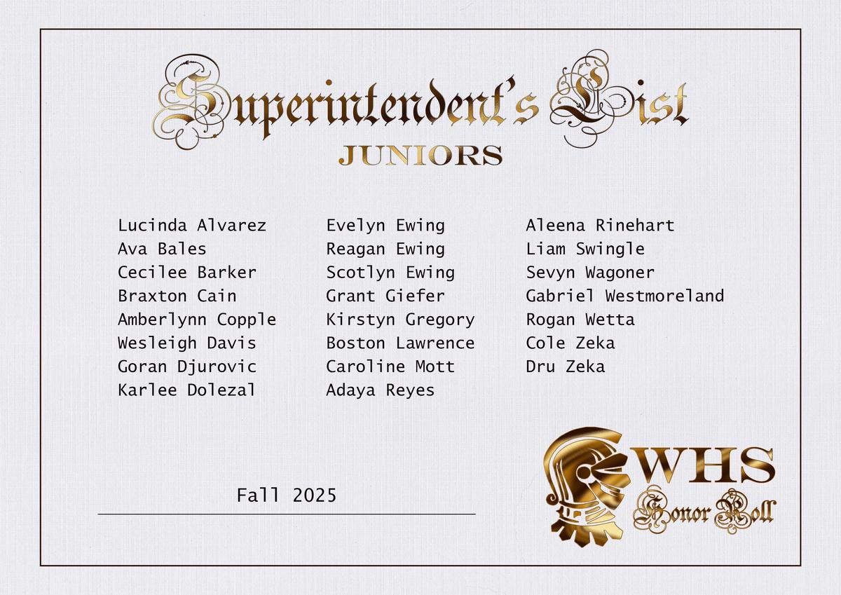 | Scholastic Honor Roll (3.0-3.49) | Principal's Honor Roll (3.5-3.99) | Superintendent's Honor Roll (4.0) |
