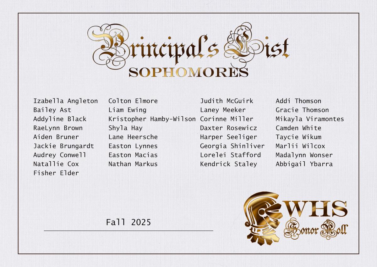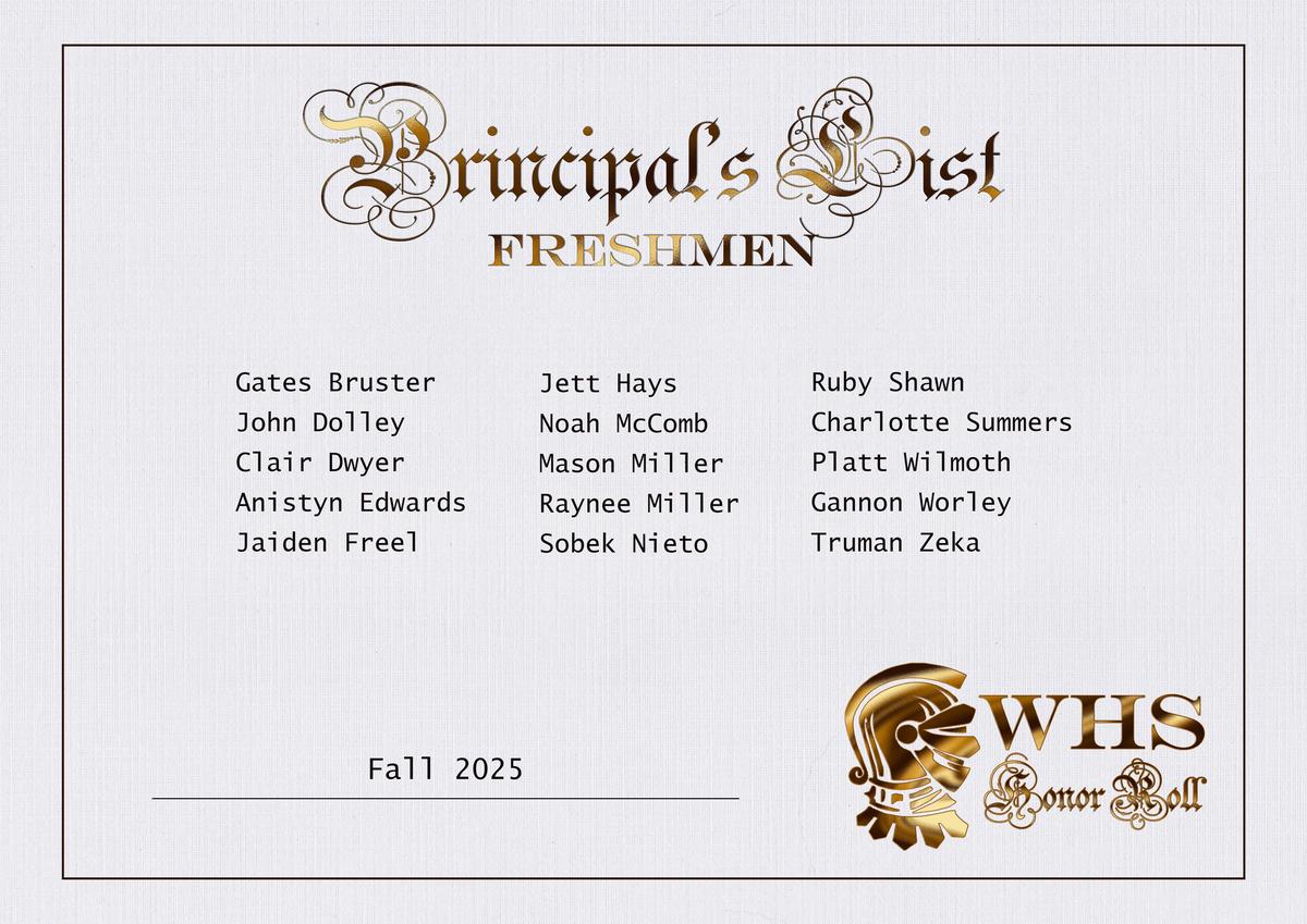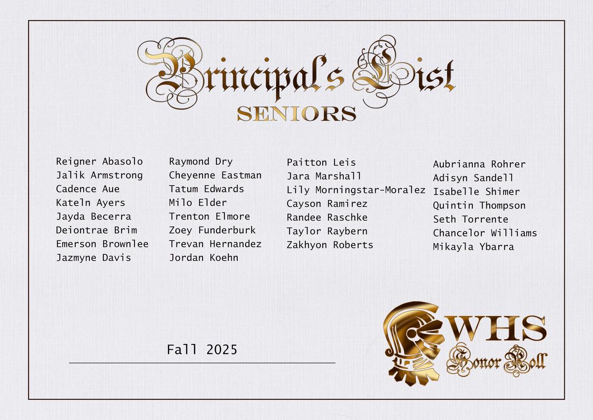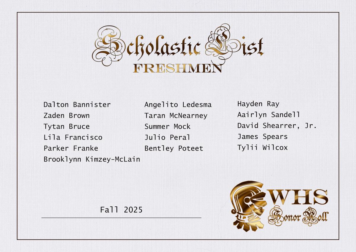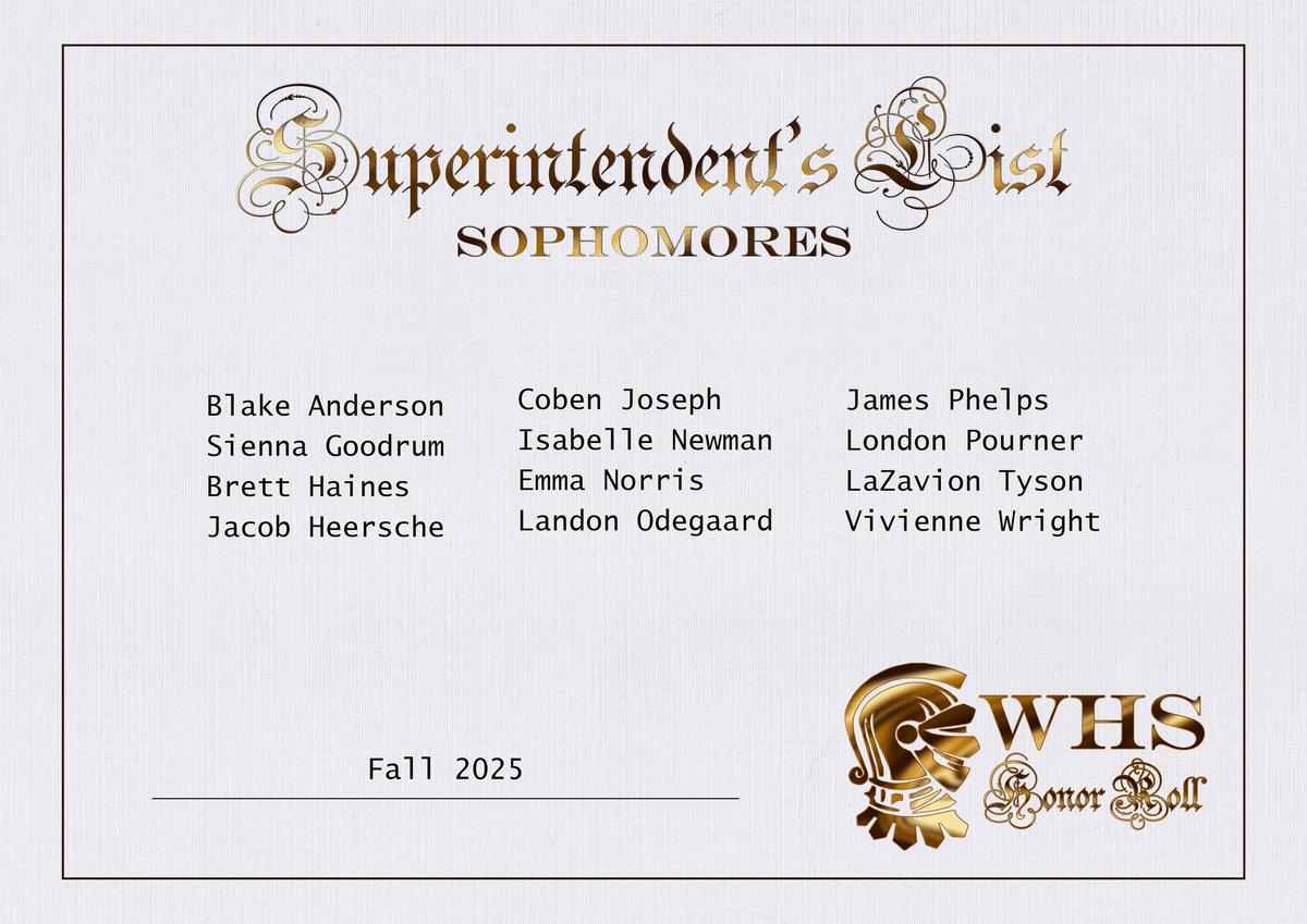 | Scholastic Honor Roll (3.0-3.49) | Principal's Honor Roll (3.5-3.99) | Superintendent's Honor Roll (4.0) |
