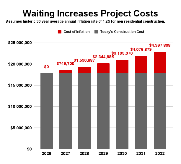 Capital Outlay dollars are limited and already stretched across many needs beyond just roofing—such as technology, transportation, and other building maintenance. If the district were to replace only one roof per year, it would take decades to complete all the necessary replacements, leaving many schools with failing roofs and escalating repair costs in the meantime. By addressing multiple roofs through a bond, the district can ensure students and staff have safe, dry, and efficient learning environments now, while also avoiding the higher costs that come with delaying needed repairs.